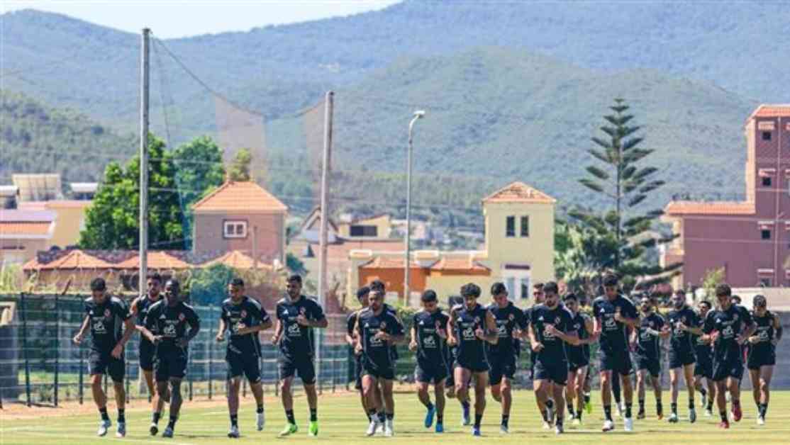 اللاعبون يمارسون تمارين بدنية مختلفة في الجيم بفندق الإقامة بمدينة طبرقة التونسية. الجهاز الفني وضع برنامجًا لهم للتأهب للمباراة.
