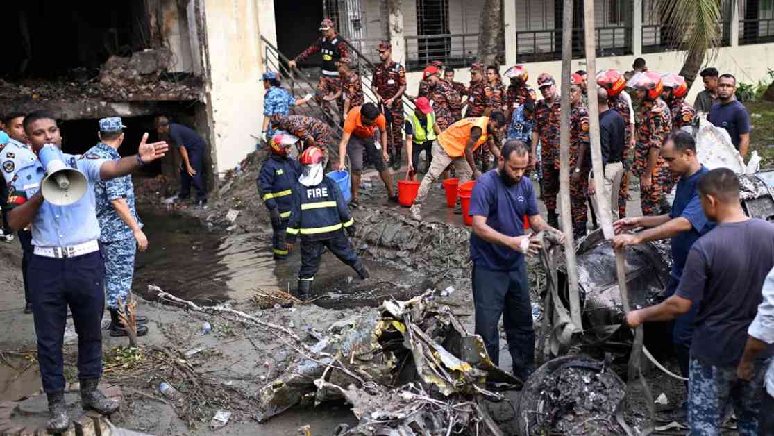 مئات الطلاب يجتمعون خارج بقايا مدرسة محترقة في العاصمة البنغلاديشية يوم الثلاثاء للمطالبة بإجابات بعد اصطدام طائرة عسكرية بالمدرسة، مما أسفر عن مقتل عشرات الأطفال. تحول يوم مدرسي عادي إلى رعب يوم الاثنين عندما تعرضت طائرة القوات الجوية البنغلاديشية لعطل ميكانيكي في الجو واندفعت نحو مدرسة وكلية ميلستون في داكا، ملتهمة المبنى الذي يتكون من طابقين باللهب والدخان. كان الطلاب الصغار ينهون حصة الدروس بعد الظهر وكان الآباء قد تجمعوا خارج البوابات لاستقبال أطفالهم عندما حدثت الحادثة، مما أسفر عن مقتل ما لا يقل عن 31 شخصًا، بمن فيهم 25 طفلاً، في أسوأ حادث جوي في البلاد في الذاكرة الحديثة. أصيب 165 آخرون، حسب إدارة العلاقات العامة في القوات المسلحة (ISPR)، العديد منهم بحروق شديدة.